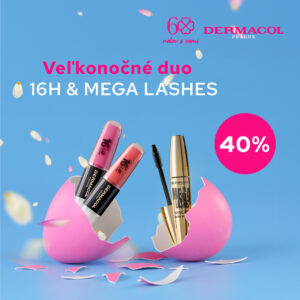 Užite si Veľkonočné sviatky s dlhotrvajúcimi rúžmi 16H lip colour, ktoré vydržia aj hodovačku a s Mega lashes riasenkami pre oslnivý objem. V ZĽAVE 40% od 30.3. do 12.4. pre členov Klubu Krásy Dermacol.
